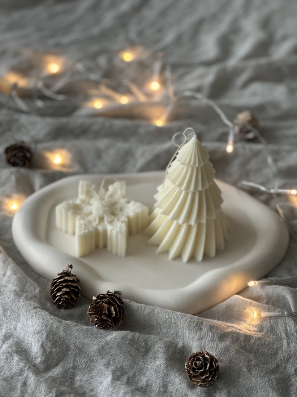 Wszystkie nasze świece są produkowane ręcznie, naturalnie mogą pojawić się drobne niedoskonałości i różnice w kolorze. Mogą również posiadać małe białe ślady zwane „szronem”, co jest zjawiskiem naturalnym w przypadku wosku sojowego. Deko gips jest odporny na ciepło i ogień. Używanie tacy do palenia świec dekoracyjnych, może spowodować pojawienie się przebarwień od wosku. W instrukcji palenia zostało opisane jak bezpiecznie usunąć wosk z tacy. Rozmiar, waga i czas spalania są przybliżone i przed użyciem zawsze zapoznaj się z instrukcją palenia świecy